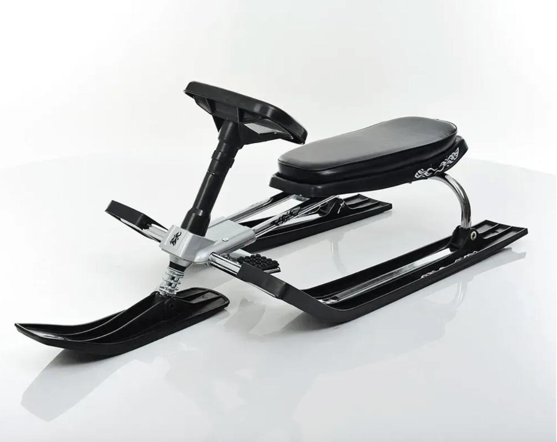 стальные трубки окрашены (черный, красный, синий); сиденья, руль и лыжи — черные