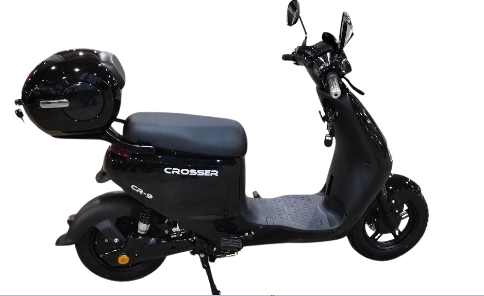 Электроволосипед Crosser ей практичностью, присущая транспортным средствам. Максимальная скорость до 60 км/ч, наибольшая дистанция пробега до 70 км. Размерность и тип шин: 3.00 –10 /3. бескамерные шины.